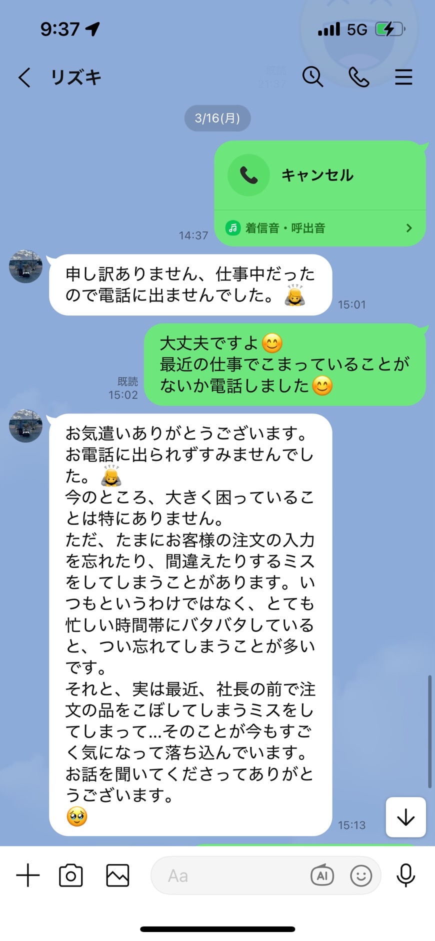 「電話に出られないことは問題ない」旨を伝えました。