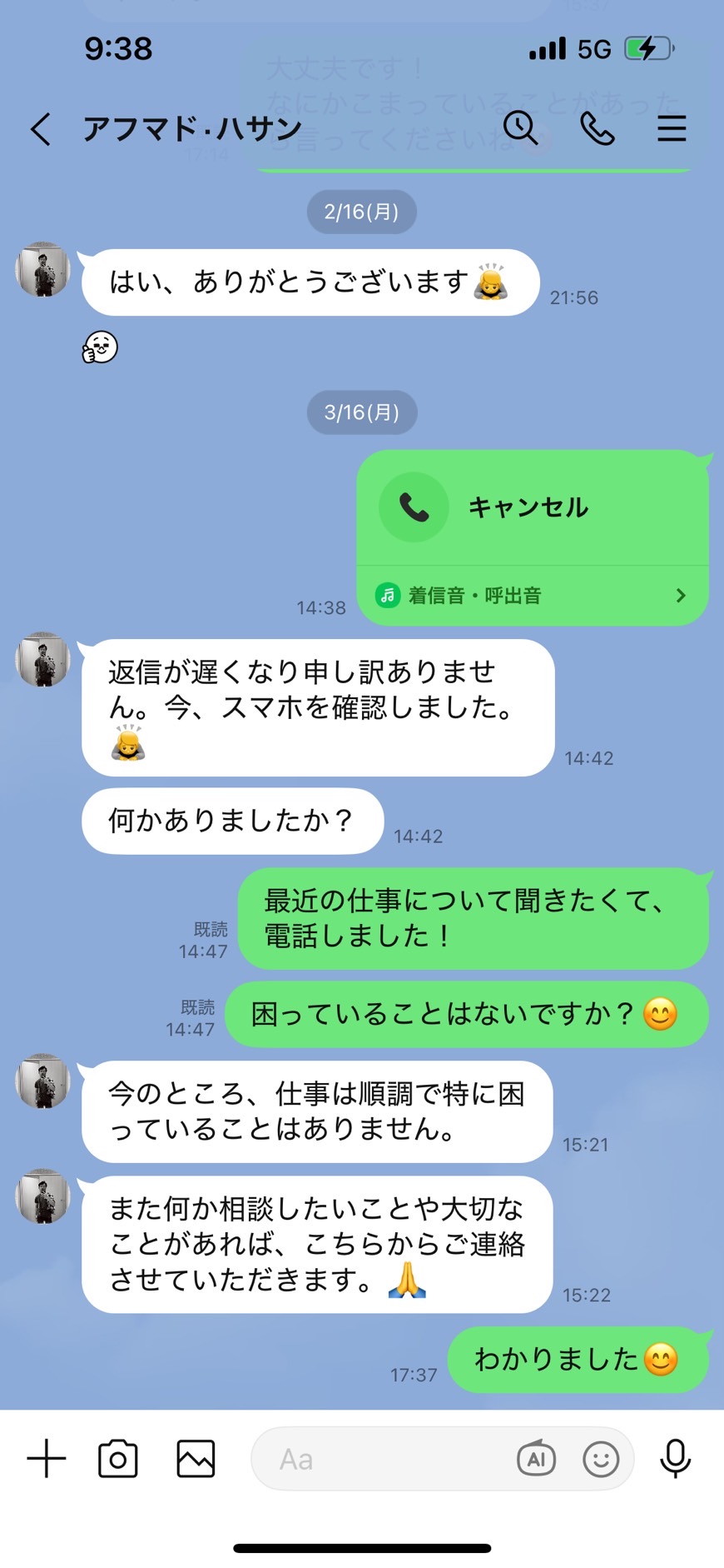 その後LINEで状況確認を行いました。