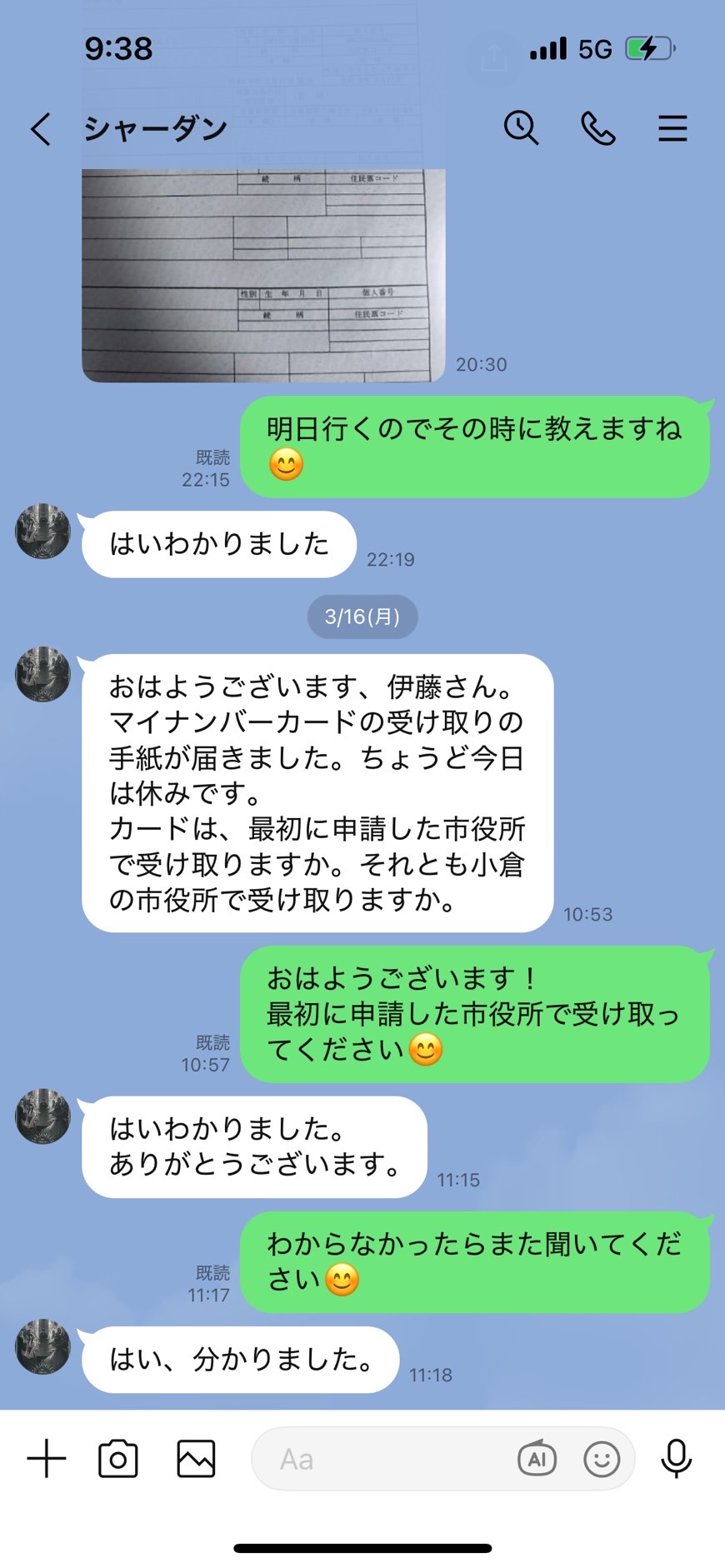 最初に申請した市役所で受け取る必要があることを、すぐにお伝えしました。